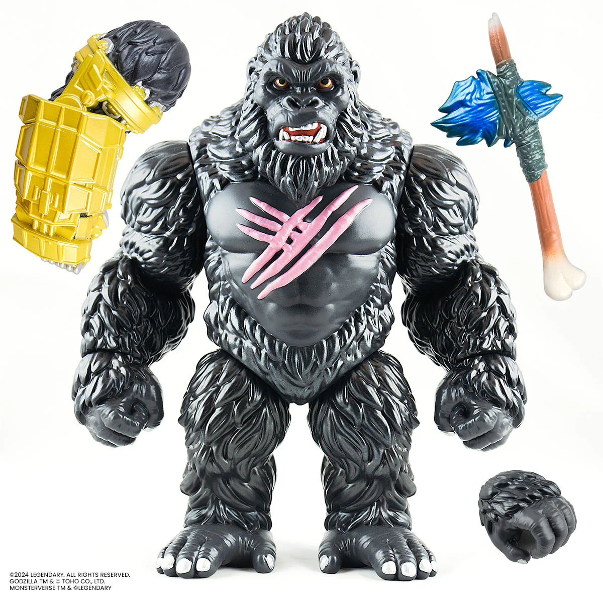 The almighty Kong comes equipped with a swappable mech arm, swappable hands and battle axe.